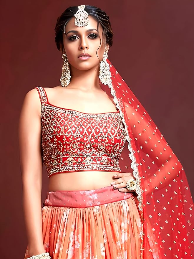 This lehenga is your all-in-one festive wardrobe essential for wedding ceremonies like engagement, sangeet, or reception, festive events like Diwali, Navratri, Karva Chauth, or Rakhi 🌟, family functions and parties 🎂, and pre-wedding photoshoots 📸 Wherever you go, this outfit brings the WOW factor. 💥