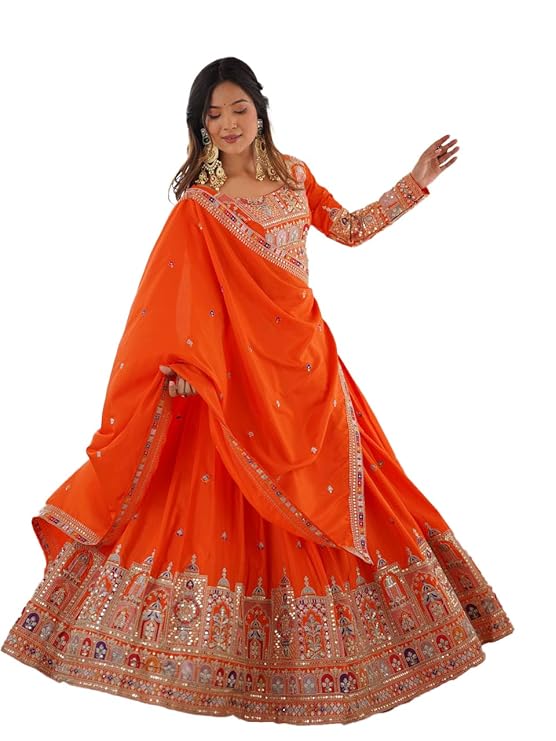 Elegance Woven in Silk – JIHU CULTURE Women’s Semi-Stitched Lehenga Choli Set