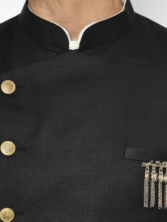 Made from a premium cotton blend material, this sherwani offers unmatched comfort and breathability, perfect for long hours of celebration. The Mandarin collar, full sleeves, and self-design pattern create a refined silhouette that’s both traditional and fashion-forward. Its fine embroidery and modern tailoring make it a versatile piece for any grand occasion.