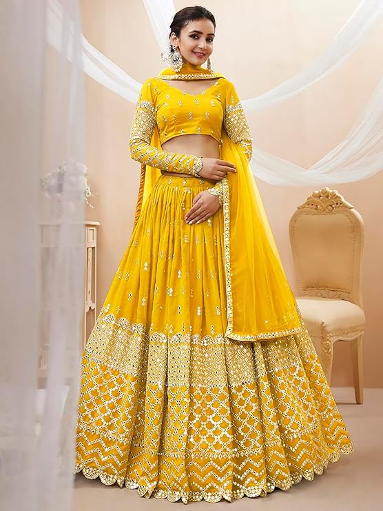 Step into elegance and confidence with the Zeel Clothing Women's Georgette Embroidered Lehenga Choli With Dupatta. Combining traditional artistry with modern design, this ensemble ensures you look regal, feel comfortable, and become the highlight of every wedding, party, or festive event.