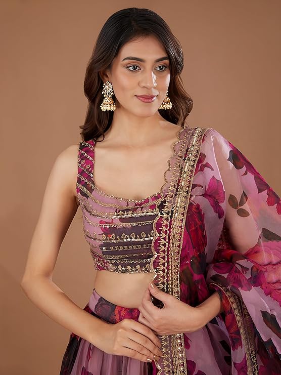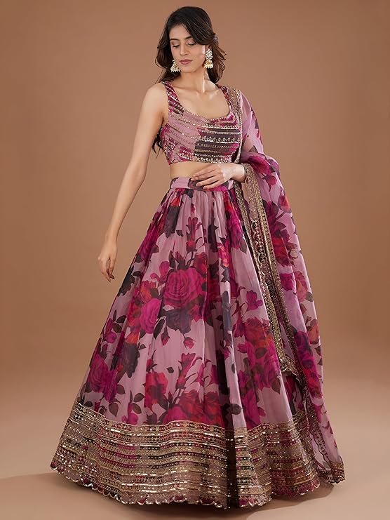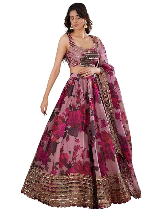 In the gentle fragrance of marigolds and jasmine, where laughter mingles with the rhythm of dhol, she enters like a verse come alive. Draped in the Zeel Clothing Women's Organza Semi-Stitched Print and Sequins Embroidered Lehenga Choli With Dupatta, she wasn’t just adorned in fabric — she was wrapped in emotion, grace, and stories of centuries told through threads of gold and shimmer of sequins.
