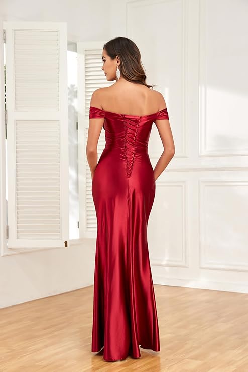 Elevate your elegance and embrace your inner star with the Off Shoulder Mermaid Prom Dress with Slit – HS009. A gown designed to make your night unforgettable — from the first turn to the final photograph.